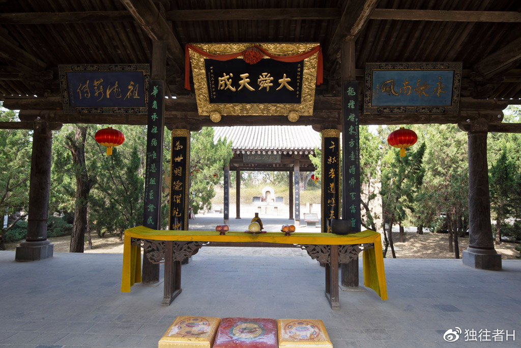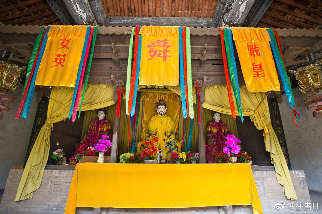月台之后的建筑是献殿,献殿为元代悬山顶式建筑,是祭祀的场所。前檐通梁长17.4米,由一根完整的古杨木搭建,古今罕见。穿过献殿便是享厅(供奉祖宗、祭祀神灵的厅堂),享厅为清代建筑。厅前牌匾“陟方之所”是雍正元年安邑知县车敏来所提,意思是舜帝升天的地方。