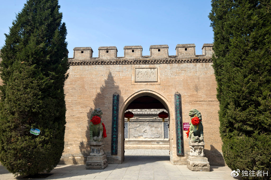 进入山门可以登楼览胜景,擂平安鼓,报平安福。两层楼的山是舜帝陵的最高建筑,登上仪门可尽览景区全景,将陵园、皇城尽收眼底,还可遥望盐池、远眺涑水孤峰。