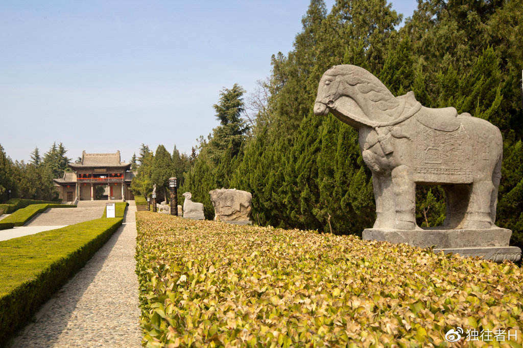 走过“古柏广场”,来到陵庙的神道。代表皇权仪卫象征的石像生列于神道二边。舜帝陵的石像生大部分是各地搜集而来,雕刻手法各异,石兽、石马、石人两两相对,神态肃穆,让帝王的威仪毕现。