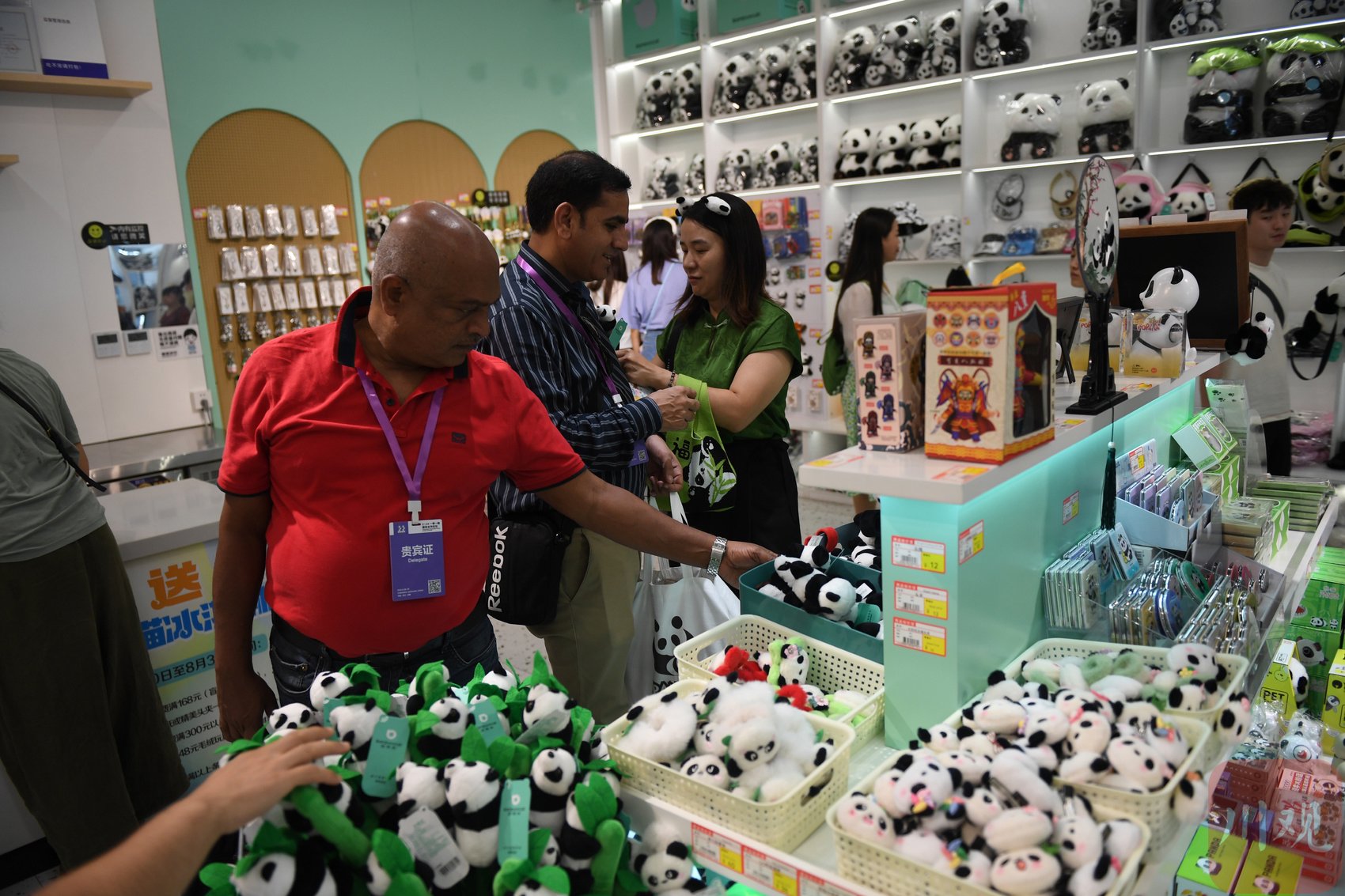 来自斯里兰卡的尼斯塔尔·卡西姆是《每日时报》的一名编辑。作为一名资深的“熊猫迷”,今天他怀着“圆梦”的心情看到了自己憧憬已久的大熊猫。此外,他还选购了不少憨态可掬的大熊猫玩偶准备带回国送给亲朋好友。