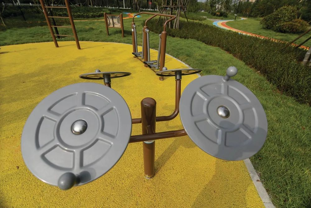 作为今年新落成的口袋公园之一,彩虹园占地1.2万平方米,绿植配置以“疏朗”为主调,采取乔灌花草搭配的绿化种植,营造了开阔的绿地空间。园内设有健身休闲区、儿童活动区、林荫休憩区等功能区。其中,健身休闲区安装了椭圆机、太极揉推器、漫步机等多套健身器材,儿童活动区安装了秋千、跷跷板等游乐设施,并设置了彩虹环步道、100米竞速跑道,可满足不同年龄段多样化的游园需求。同时,配置休闲座椅、管理用房、亮化照明、垃圾箱等配套设施,给周边居民提供了一处家门口的遛娃、健身、休闲好去处。
