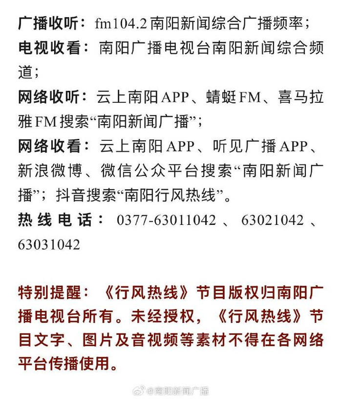 12月15日8:30——9:30 南阳市园林绿化中心党组成员、副主任秦道宇带队值班《行风热线》,主要介绍我市的园林绿化工作。