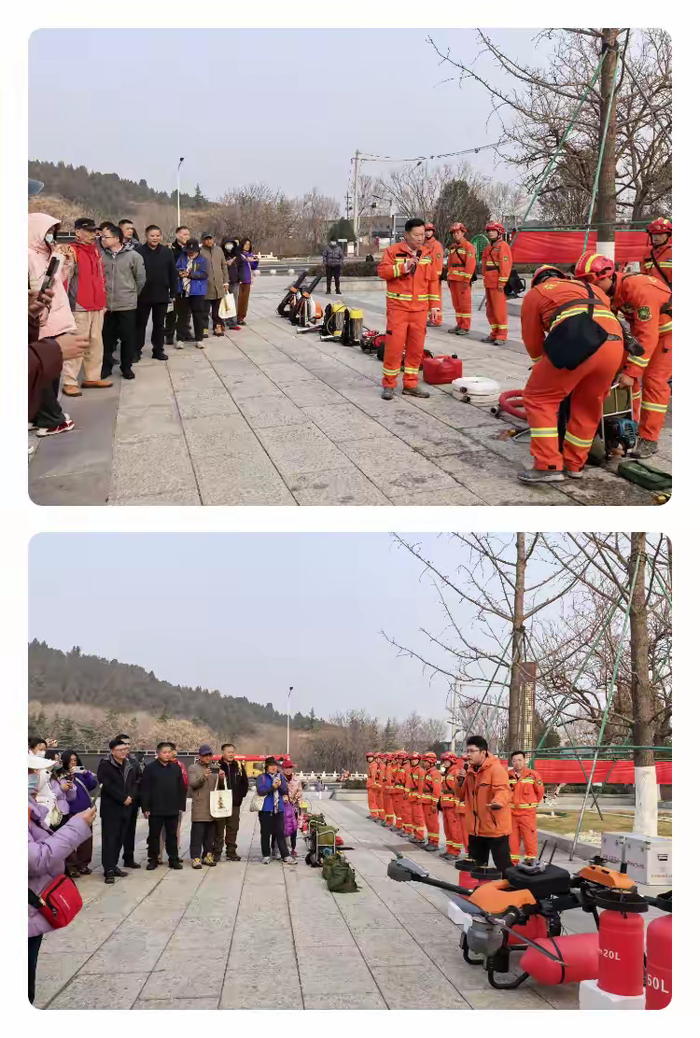 在装备展示环节,代表们参观并了解了风力灭火机、灭火水枪、灭火无人机等专业防灭火装备的功能与使用方法。通过森林消防队员的现场演示与讲解,大家体验感知了森林防火工作,深化了对森林防火工作专业性与艰巨性的了解,以更直观的认识强化了森林防火意识。