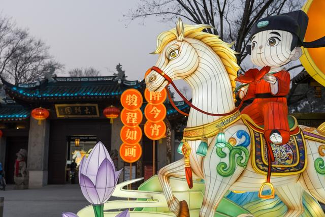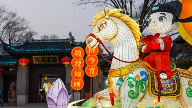 2月12日,解放日报·上观新闻记者在500多岁的古猗园内看到,9组精心设计的四川自贡非遗彩灯和数百盏年俗彩灯被同时点亮,拉开了“猗醉今宵,骏程如画”马年迎春活动的序幕。
