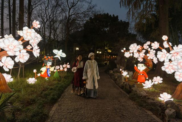 人生喜事。 陈玺撼摄今年在春节长假亮相的彩灯艺术不止自贡彩灯,记者在古猗园内看到,还有秦淮灯彩、仙居花灯、硖石灯彩等远道而来的“客人”,近年来不太常见的兔子灯也有展示。
